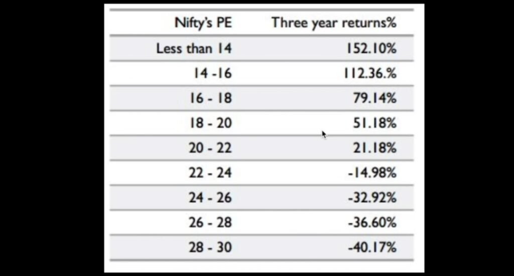 - When Niftyโs PE was below 14, the 3-year return was 152.10%.